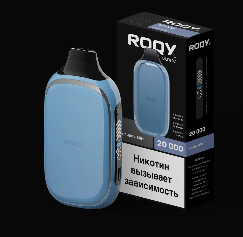 ROQY L — одноразовая перезаряжаемая электронная сигарета с гибридным никотином, рассчитанная на 20 000 затяжек.